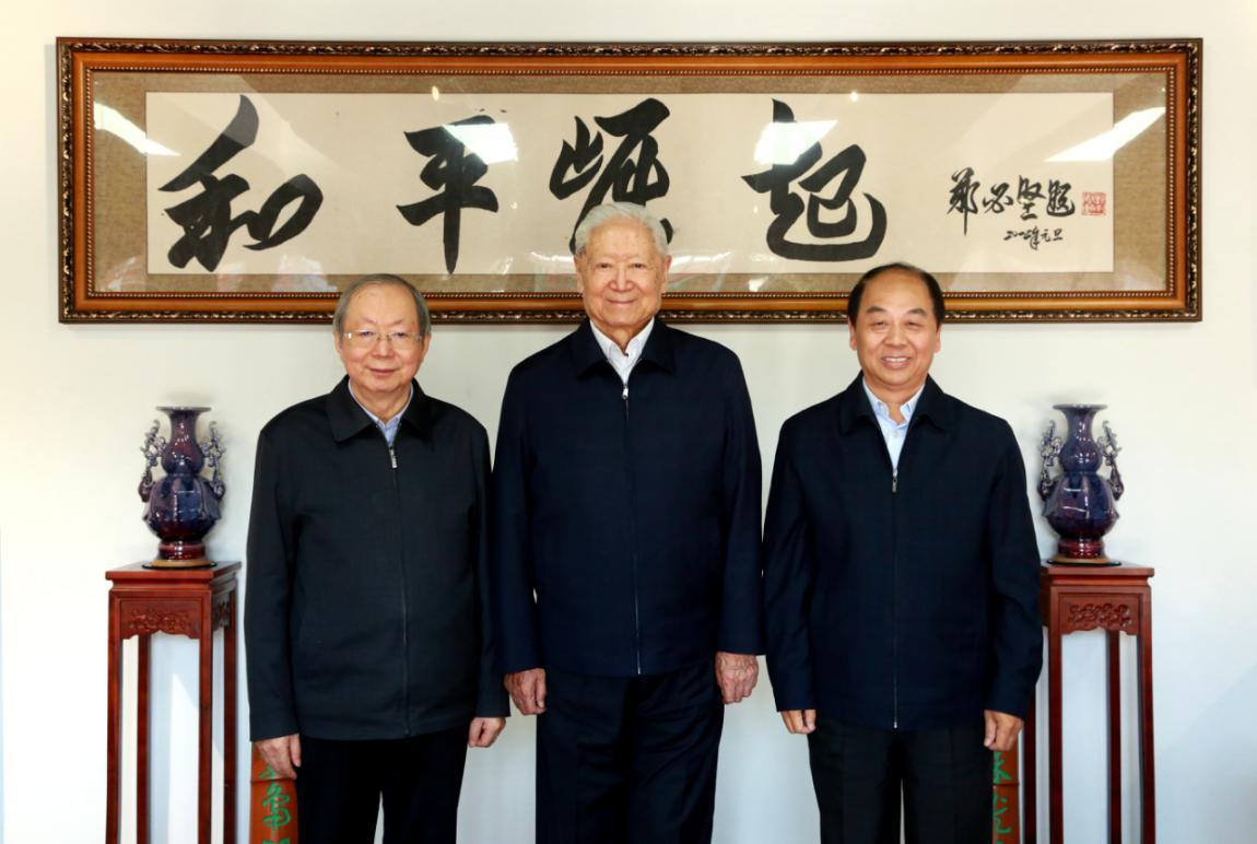 鄭必堅(jiān)會(huì)長(zhǎng)(中)與彭森會(huì)長(zhǎng)、趙艾常務(wù)副會(huì)長(zhǎng)合影