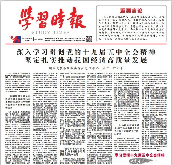 一分部署,九分落實,黨的十九屆五中全會描繪的宏偉藍圖要靠全黨全國各族人民的辛勤工作和努力奮斗去實現(xiàn)。我們要緊密團結(jié)在以習近平同志為核心的黨中央周圍,在黨中央集中統(tǒng)一領(lǐng)導(dǎo)下,深入學習貫徹習近平新時代中國特色社會主義思想,增強“四個意識”、堅定“四個自信”、做到“兩個維護”,不忘初心、牢記使命,同心同德、頑強奮斗,不斷提高貫徹新發(fā)展理念、構(gòu)建新發(fā)展格局的能力和水平,為奪取全面建設(shè)社會主義現(xiàn)代化國家新勝利作出應(yīng)有的貢獻。