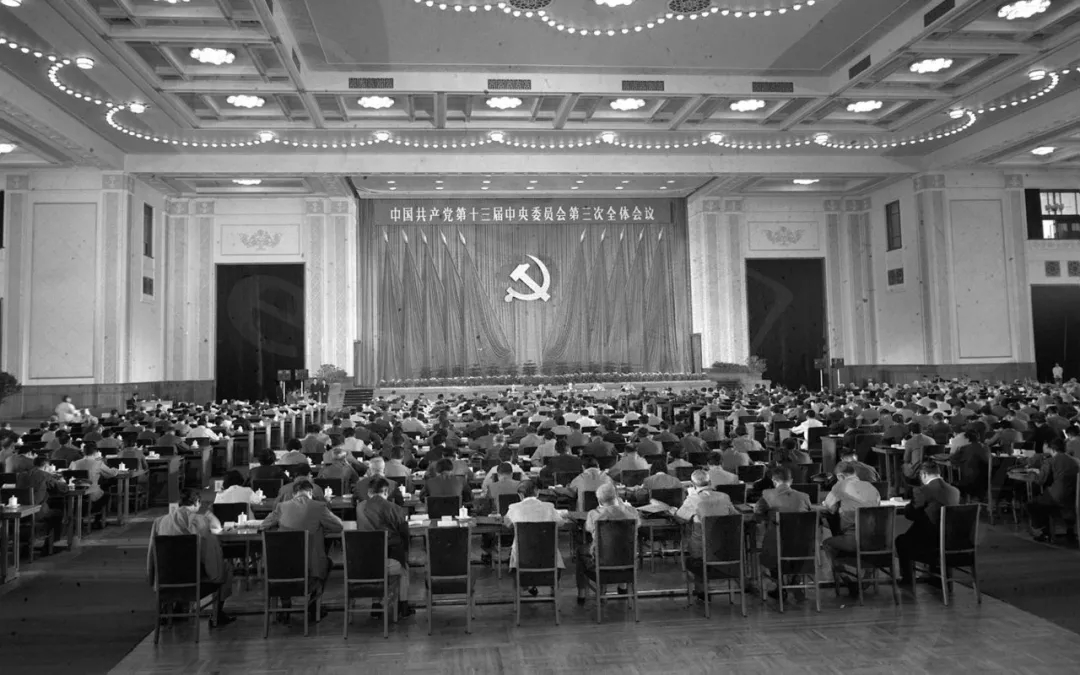 1978年12月18日至22日,中共十一屆三中全會在北京召開。陳云、鄧小平、華國鋒、葉劍英、李先念、汪東興(自左至右)在十一屆三中全會上