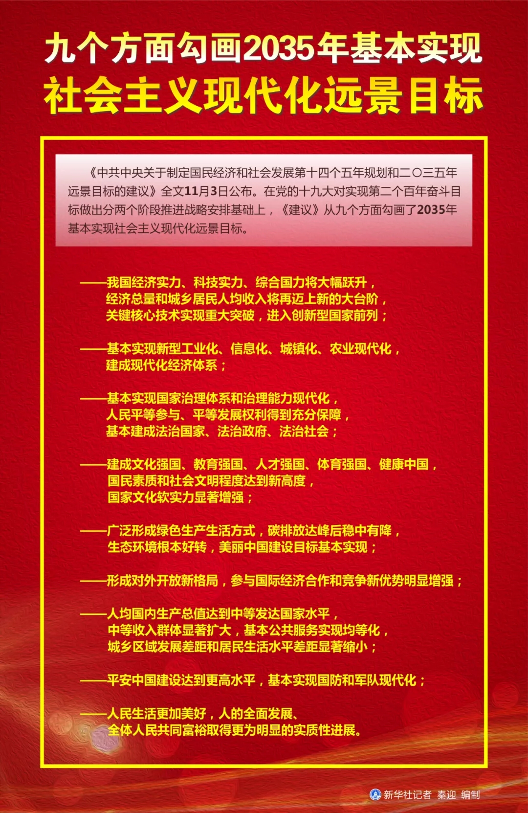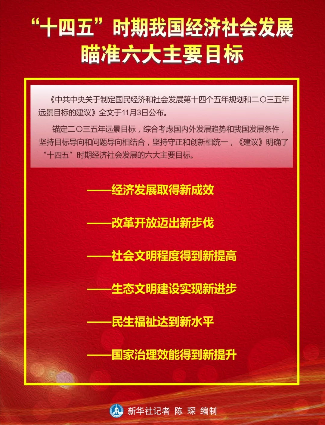 黨的十九屆五中全會根據(jù)第一階段“基本實現(xiàn)社會主義現(xiàn)代化”的任務(wù),明確提出了2035年遠(yuǎn)景目標(biāo)和“十四五”發(fā)展目標(biāo)。盡管這些規(guī)劃目標(biāo)以定性描述為主,沒有明確量化目標(biāo),但也十分具體,蘊含了定量要求,在起草文件過程中也做了大量測算,心中是有數(shù)的。