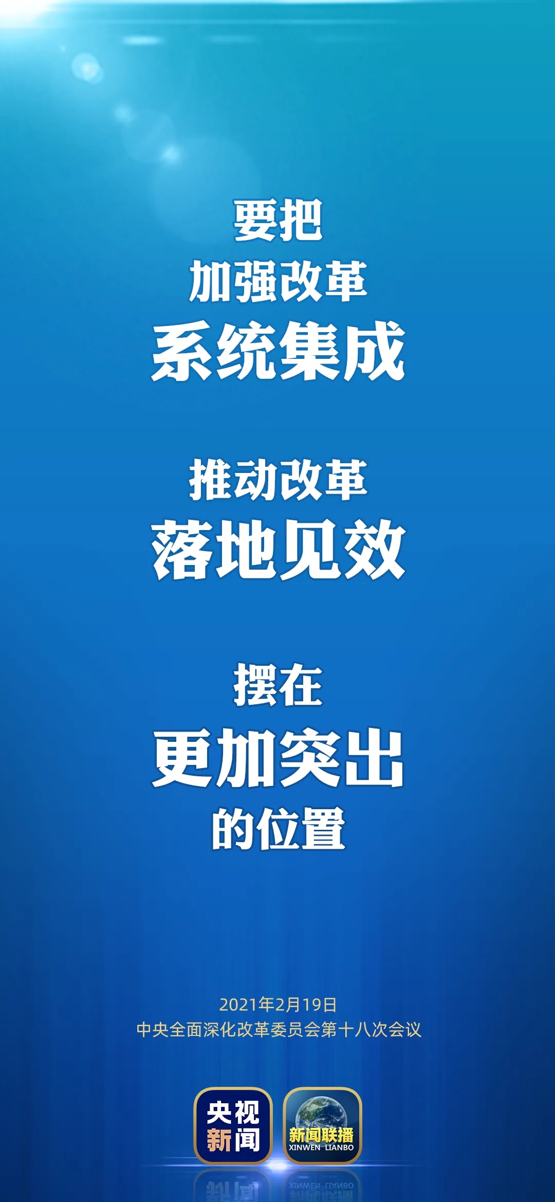 2月19日,中共中央總書記、國家主席、中央軍委主席、中央全面深化改革委員會主任習(xí)近平主持召開中央全面深化改革委員會第十八次會議并發(fā)表重要講話。他強調(diào),要完整、準(zhǔn)確、全面貫徹新發(fā)展理念,更加精準(zhǔn)地出臺改革方案,推動改革向更深層次挺進(jìn)。來看梳理→
