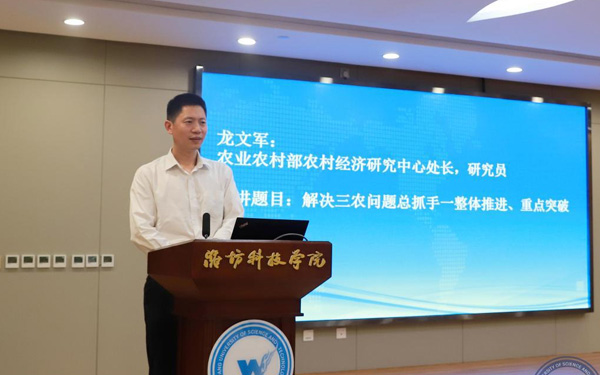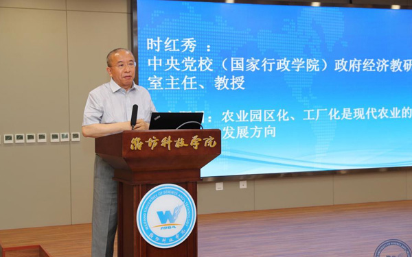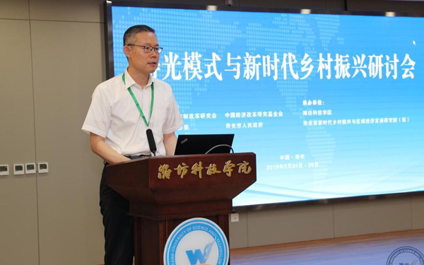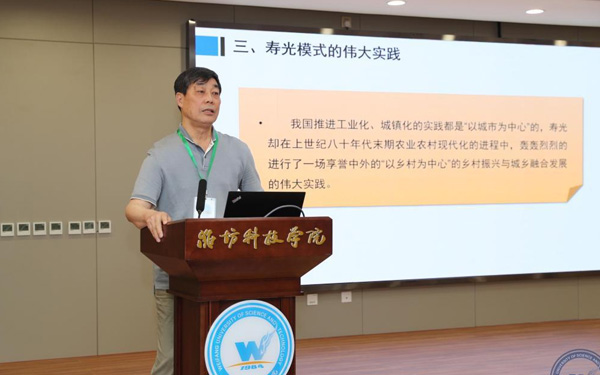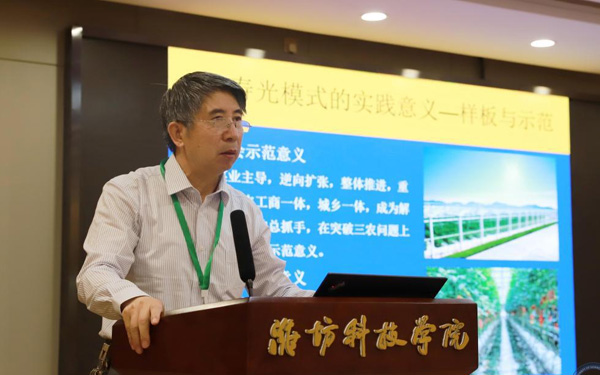 壽光市人大常委會副主任、濰坊科技學院校長李昌武在致辭中表示,濰坊市委副書記、壽光市委書記林紅玉同志在全市三級干部會議上,對我校提出全面提升辦學水平,提高社會服務能力,加快推進碩士點培育建設的要求。為落實林書記講話要求,加強區(qū)域經濟和“壽光模式”研究,壽光市人民政府與中國經濟體制改革研究會等聯(lián)合成立的“新時代鄉(xiāng)村振興與區(qū)域經濟發(fā)展研究院”掛靠學院,引進了大批高層次人才,形成了一批富有創(chuàng)造性、建設性的學術研究成果和決策咨詢意見,“壽光模式”研究成果在國家發(fā)改委《改革內參》刊發(fā)。成立了國家二級學會農學思想與《齊民要術》研究會,連續(xù)成功舉辦了10屆中華農圣文化國際研討會,師生原創(chuàng)52集動畫片《農圣賈思勰》在中央電視臺和山東衛(wèi)視播出。學校組建了博士、教授農學科研服務團隊,成立了蔬菜產業(yè)學院、農業(yè)技術培訓基地,自主研發(fā)蔬菜品種28個,在全國7個省區(qū)建立了育種基地,開發(fā)運營了壽光市農業(yè)智慧監(jiān)管服務公共平臺,打造了覆蓋設施農業(yè)全產業(yè)鏈的專業(yè)服務體系,為創(chuàng)新提升“壽光模式”和鄉(xiāng)村振興戰(zhàn)略的實施提供了有力支撐。