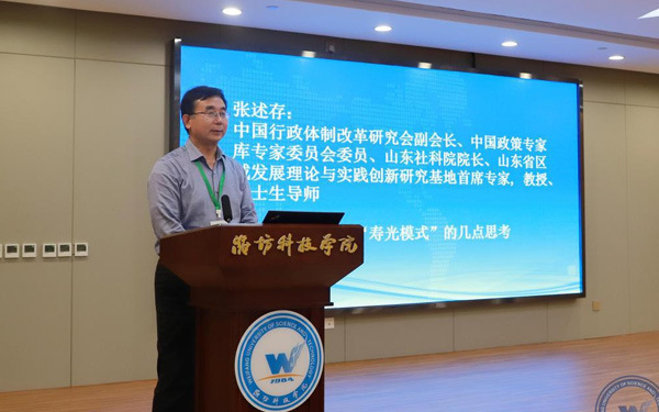 新時代鄉(xiāng)村振興與區(qū)域經濟發(fā)展研究院執(zhí)行院長、經濟管理學部主任、教授、博士生導師張友祥代表“壽光模式”研究課題組從“壽光模式”的內涵和特征、形成機制、實踐價值等方面作了研究成果匯報。
