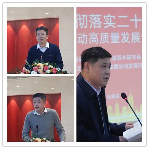 中國商業(yè)經(jīng)濟(jì)學(xué)會(huì)副會(huì)長、河北省改革戰(zhàn)略研究會(huì)顧問、河北經(jīng)貿(mào)大學(xué)原校長紀(jì)良綱,河北省資本研究會(huì)會(huì)長、杰明投資董事長李月分別發(fā)表致辭,中國經(jīng)濟(jì)體制改革研究會(huì)副會(huì)長、河北省改革戰(zhàn)略研究會(huì)會(huì)長劉萬玲致辭并作主旨演講,河北資本研究會(huì)首席經(jīng)濟(jì)學(xué)家、河北省商務(wù)廳原巡視員史玉強(qiáng)從外地發(fā)來書面致辭。河北省改革戰(zhàn)略研究會(huì)副會(huì)長、河北經(jīng)貿(mào)大學(xué)副校長田學(xué)斌教授,邯鄲銀行黨委書記、董事長鄭志瑛教授,河北省宏觀經(jīng)濟(jì)研究院副院長高智研究員,河北經(jīng)貿(mào)大學(xué)金融學(xué)院院長王重潤教授分別作主題演講。河北省改革戰(zhàn)略研究會(huì)副會(huì)長、河北省社科院創(chuàng)新驅(qū)動(dòng)發(fā)展研究中心主任顏廷標(biāo)研究員主持研討會(huì)。會(huì)議期間還舉辦了新書發(fā)布、銀企對接活動(dòng)。參加會(huì)議的還有河北省改革戰(zhàn)略研究會(huì)特邀高級專家、河北冀廣傳媒集團(tuán)公司原董事長趙華茂,河北省改革戰(zhàn)略研究會(huì)副會(huì)長馮文斌 ,經(jīng)貿(mào)橋聯(lián)合創(chuàng)始人、省校企合作促進(jìn)會(huì)執(zhí)行會(huì)長張曉軍,河北省資本研究會(huì)副會(huì)長、河北省軍民兩用技術(shù)交易中心主任周天易,邯鄲銀行石家莊分行行長常志英,河北省資本研究會(huì)秘書長韓峰,河北省改革戰(zhàn)略研究會(huì)秘書長李文正等。省內(nèi)經(jīng)濟(jì)界知名學(xué)者、行業(yè)專家和企業(yè)代表等30余人出席會(huì)議。