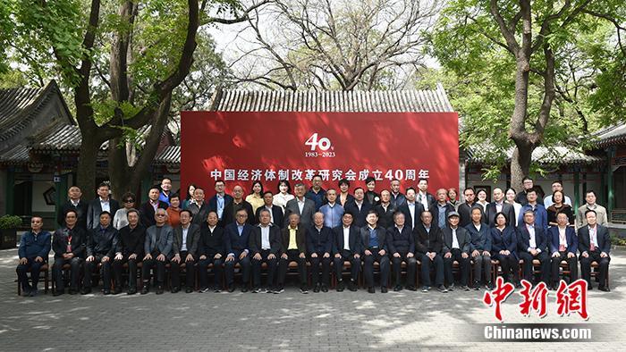 2023年4月19日,中國經(jīng)濟體制改革研究會在北京召開成立四十周年座談會,圖為與會嘉賓合影。中新網(wǎng)記者 李駿 攝