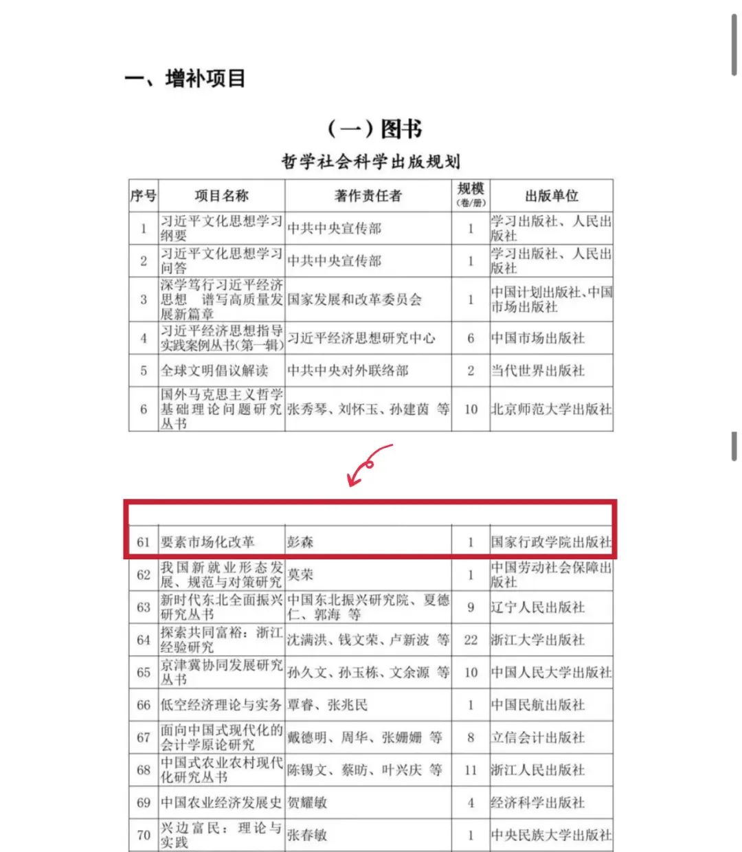 2024年8月29日,國家新聞出版署公布《“十四五”國家重點出版物出版規(guī)劃調整情況》,確定“十四五”國家重點出版物出版規(guī)劃增補項目590個,其中圖書出版項目524個、音像電子出版項目59個、數字出版項目7個。我會彭森會長主編的《要素市場化改革》入選“哲學社會科學出版規(guī)劃”項目。