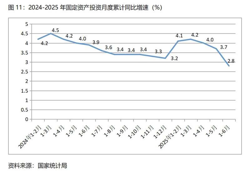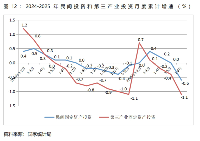 (二)民間投資和第三產(chǎn)業(yè)投資增速均由增長轉(zhuǎn)為下降,餐飲收入增速回落較多。上半年民間固定資產(chǎn)投資同比下降0.6%,一季度為增長0.4%,這是自2023年9月以來月度累計的最大降幅;第三產(chǎn)業(yè)固定資產(chǎn)投資同比下降1.1%,一季度為增長0.1%,這是今年以來月度累計的最大降幅;餐飲收入同比增長4.3%,比一季度增長4.7%回落了0.4個百分點,比上年同期增長7.9%回落3.6個百分點。這些指標增速的變化需引起宏觀調(diào)控政策的高度關(guān)注。